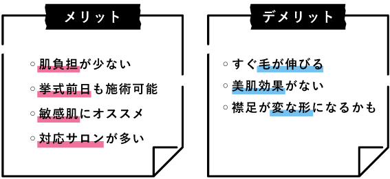 自身のお肌状態、毛の生え具合、挙式までの日数などによって最適な方法を選んでくださいね。