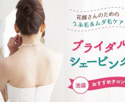 池袋でブライダルシェービングができるエステサロンをピックアップしました。カミソリを使う「本格シェービング」と、電気シェーバーを使う「ソフトシェービング」、両方のサロンをご紹介いたします。ブライダルシェービングの予約ならブライダルエステナビへ。